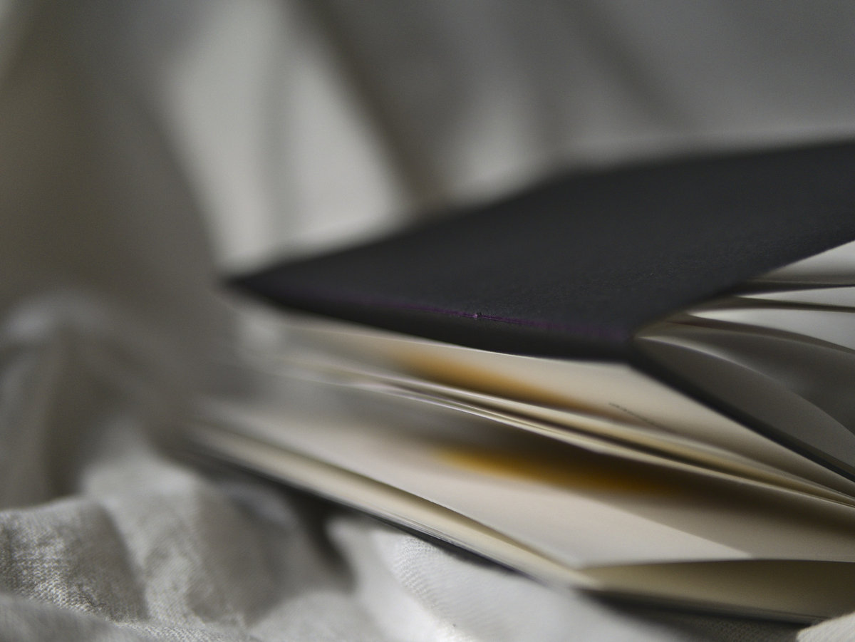 • black cover, purple thread